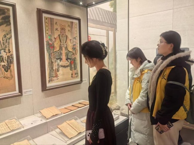 图为实践队成员在博物馆参观古籍书画展品,夯实民族共同体的启示。牟琪琪 供图