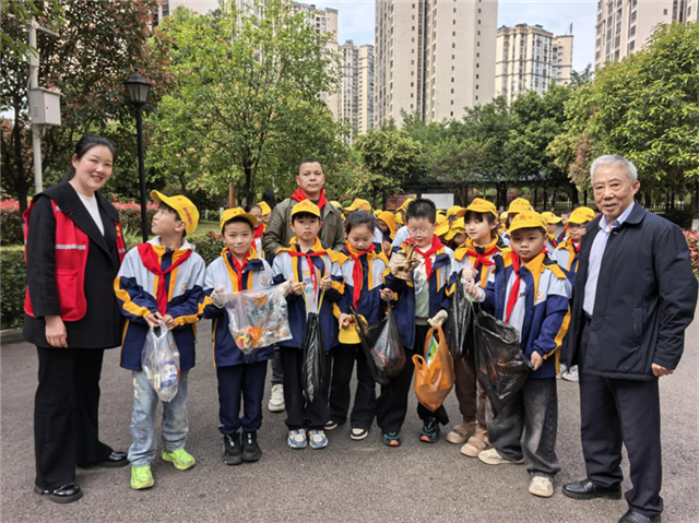 护绿美化学雷锋,童心筑梦育信仰。在“护绿美化”行动中,孩子们化身“绿色小卫士”,“五老”志愿者带领下走进社区公园和小区绿化带开展环保志愿服务。他们清理杂草、捡拾垃圾,并向过往居民发放环保倡议书,呼吁大家共同爱护家园环境。一把钳子、一次次弯腰,不仅让环境面貌焕然一新,更在孩子们心中播下了生态文明的火种。