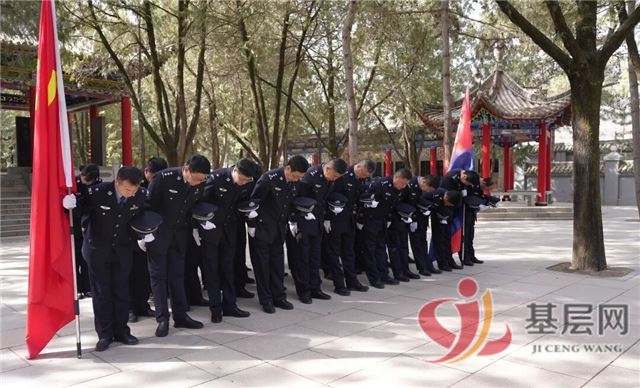 全体人员整齐列队,向革命先烈和公安英烈敬献花篮,由县局领导整理花篮缎带,全体人员向英烈行注目礼,表达对英烈的崇高敬意与深切缅怀。