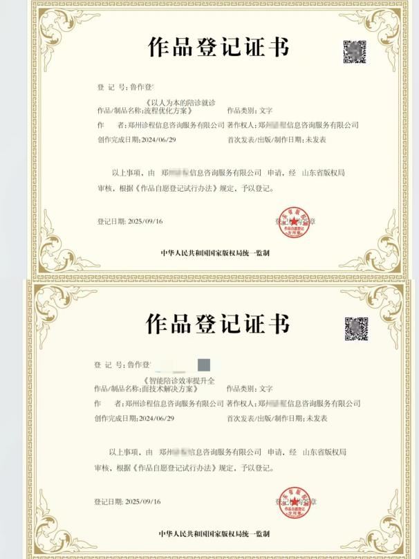 依托医学院校专业背景,胖胖陪诊自主研发两项获国家版权局登记的核心方案,以人文与数智双轮驱动升级陪诊服务。《以人为本的陪诊就诊流程优化方案》以患者需求为核心,重构“诊前精准对接—诊中全程陪护—诊后健康回访”全流程标准,提前规划就医安排、全程协助诊疗、跟进康复服务,同时为老人、儿童等特殊群体优化细节,让陪诊兼具专业与温度。《智能陪诊效率提升全面技术解决方案》搭建AI匹配、路线规划、数字追溯三大智能体系,破解传统陪诊效率低、匹配乱、追溯难的痛点,推动陪诊服务从“人工粗放式”向“数智精细化”跨越,为行业提供可复制、可推广的实践样本。