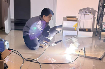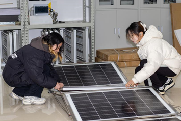 图二:“驭能方舟”团队成员在加工间进行光伏板焊接与线束整理