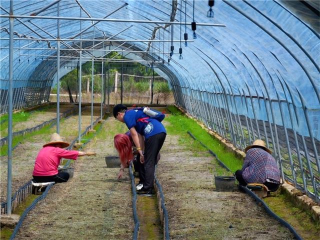 7月13日,调研队深入拐里村、塘口村,探访蔬菜产业带动乡村振兴的实践路径。村干部介绍,当地依托太白高山蔬菜品牌优势,通过成立种植合作社实现“统一技术标准、统一销售渠道”,推动村民规模化种植。14日,队员们参观了咀头镇拐里村的陕西省高山露地蔬菜“一新二改三化”技术示范基地。在工作人员引导下,队员们实地观察学习技术应用细节,直观感受标准化种植对产能提升的作用。队员们了解到,该基地以新品种推广为核心,主要种植羽衣甘蓝、生菜等,将传统育苗升级为漂浮育苗等集约化模式,传统生产转为标准化种植,并推行机械化、化肥农药减量化及产品商品化。