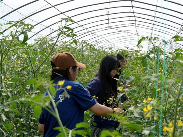 7月11日,调研队走进太白高山蔬菜产业园,与园区支部书记闻杰深入交流产业发展路径。据介绍,园区运营主体 “三秦森工”由传统森工企业转型而来,依托鳌山脚下 “空气、水质、土壤”三大生态优势发展生态农业。交流过程中,队员们了解到目前园区已形成“源头生产—加工配送”的全产业链模式,自主生产有机肥;产品通过订单模式供应大中型企业及社区团购,同时结合避暑旅游推出采摘项目,吸引周边城市游客。通过对大棚的实地考察与对周边农户及游客的采访,队员们发现园区面临品牌知名度低、专业人才短缺、种植规模有限等挑战,未来计划整合资源打造统一品牌,需多方协同发力。