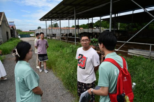 (青岛农业大学实践团成员在养殖场内开展调研)