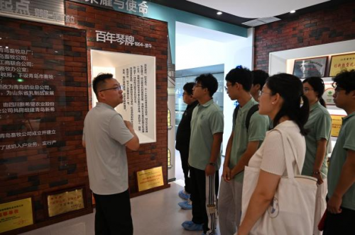 之后,服务团前往规模更大的青岛新希望琴牌乳业有限公司。成员们深入现代化生产园区,重点考察智能化生产线——从原奶检验的“在线检测系统”到产品出库的“智能分拣平台”,感受数字化技术为乳企带来的效率变革,学习乳企在 “绿色发展” 方面的实践经验,为后续产业链服务积累案例。