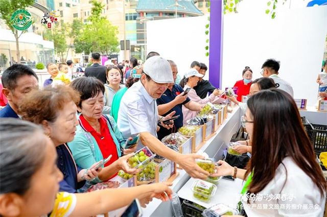 活动中,乌海市农牧局、文体旅游广电局、商务局相关负责人分别就乌海葡萄、特色农产品、文化旅游资源及特色美食等内容进行了现场推介,并诚挚邀请广大游客品乌海葡萄,来沙漠看海,体验“一城览尽塞外风”的独特魅力。
