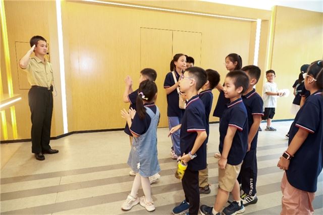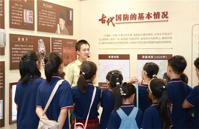 以史为鉴,开创未来,必须加快国防和军队现代化。强国必须强,军军强才能国安。新征程上我们要全面贯彻新时代党的强军思想把人民军队建设成世界一流军队,也需要像新生力量的加入。讲解员通过案例分析和互动问答引导孩子们思考国防安全的重要性,树立起“国家安全,人人有责”的意识。
