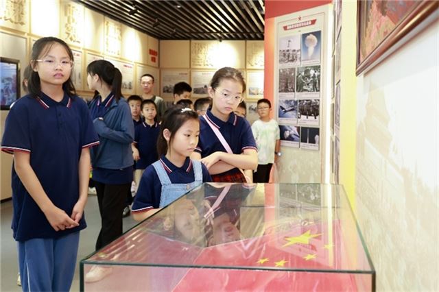 孩子们在这一展区驻足,凝视鸦片战争浮雕和南京条约的复印本。讲解员介绍了近代史上主权沦丧的历史,孩子们在参观过程和讲解中切实体会到了原来课本里的不平等条约如此沉重。近代史是中华民族的屈辱史,也是一部重生史,通过触摸历史的伤痕启示我们落后就要挨打,自强不息的道理。