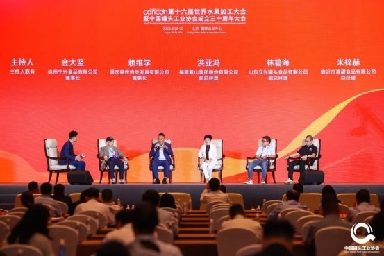 在本次大会上,漳州市罐头食品商会的会长洪亚鸿先生代表福建紫山集团股份有限公司,荣幸地受邀参与了一场主题为“回顾过去,立足现在,面向未来,凝心聚力再出发”的深度对话环节。在这场对话中,洪亚鸿会长与其他行业精英共同探讨了如何在回顾历史经验的基础上,立足当前的发展现状,并展望未来的发展前景,从而凝聚各方力量,共同推动行业迈向新的征程。