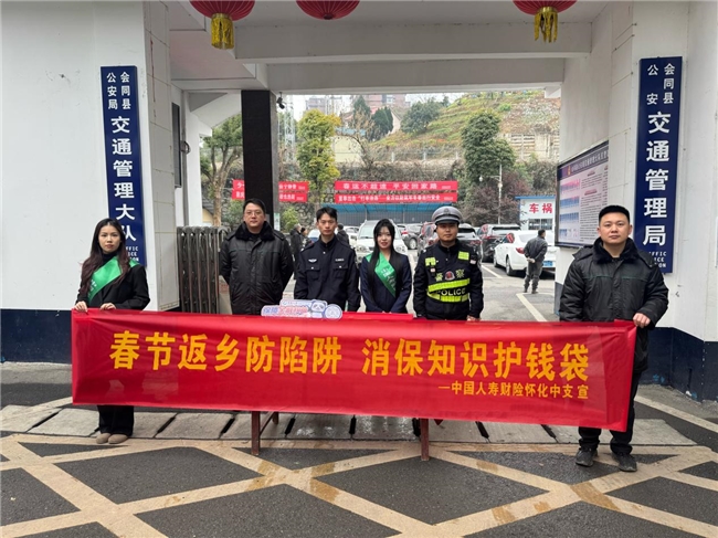 (通讯员:李淑珍、杨颖佳)为筑牢春运期间广大旅客及务工人员的财产安全防线,2026年2月11日,中国人寿财险怀化市中心支公司与会同县交警大队联合开展“春节返乡防陷阱 消保知识护钱袋”主题宣传活动,将实用的金融安全知识与贴心的便民服务送到群众身边。