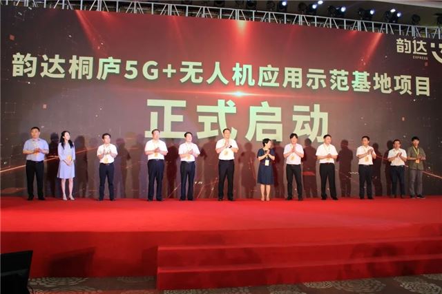 最后环节,与会领导共同启动韵达桐庐5G+无人机应用示范基地项目。韵达5G无人机项目联合了中国移动、北京航空航天大学杭州创新研究院等多家单位,将以物流5G无人机为切入点,推进无人机在快递物流行业的研发、应用,对于解决偏远山区的配送需求,推进快递进村工程有非常重大的意义。