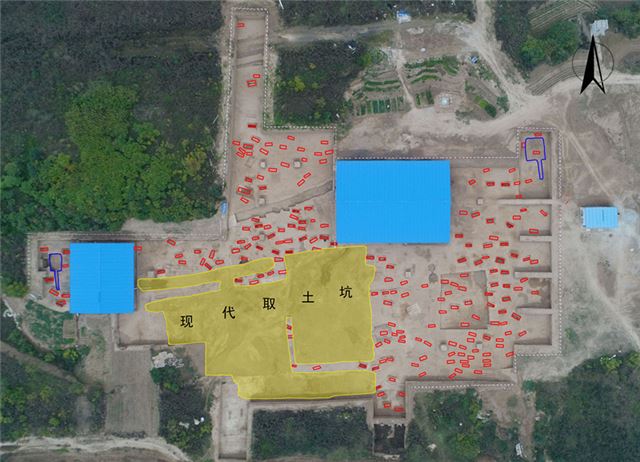杨官寨遗址庙底沟文化墓地发掘区航拍