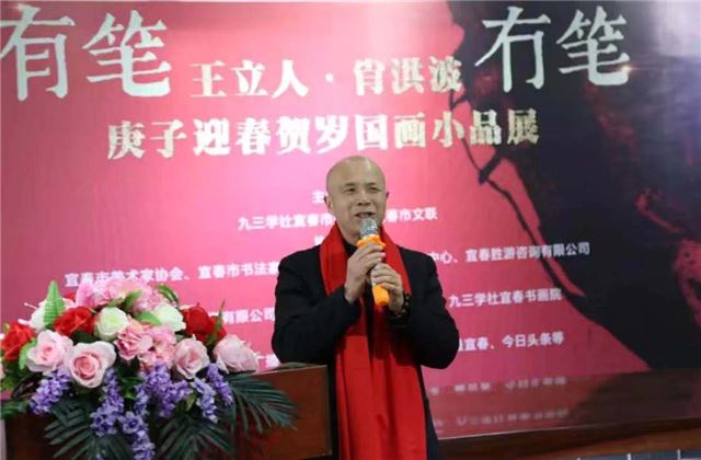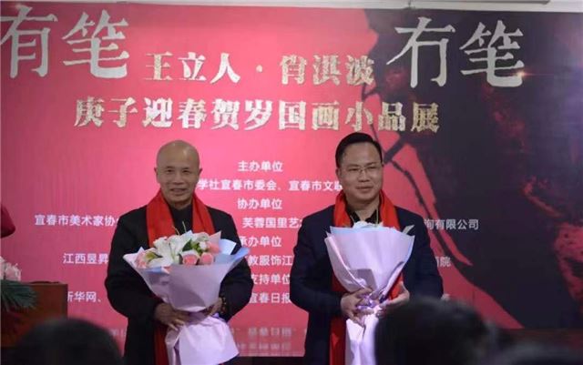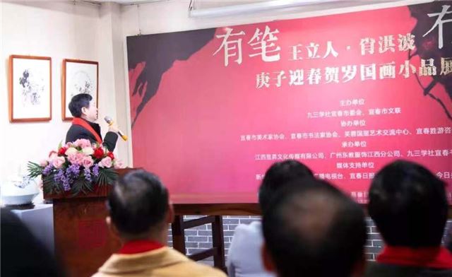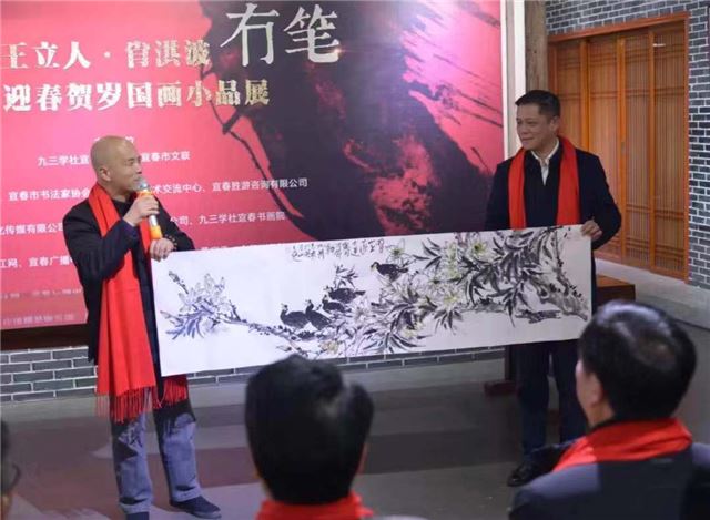 宾朋云集,深情厚爱贺画展;艺坛双璧,国画小品迎新春。今天的书画院高朋满座,一派喜庆祥和的气氛;有笔冇笔·王立人/肖洪波庚子迎春贺岁国画小品展在九三学社宜春书画院隆重开展。