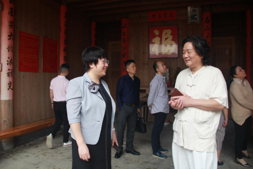 陆地的目光很特別,虽身居高位却平易近人,温雅一身文艺范,常口若悬河妙语连珠,能写一手好书法,但还谦恭不张扬。常言道,有緣自相融,这雨山虽常闷騷,偶遇这大官员,也不怯场,笔下生发朵朵花娇也惊人。陆地看着脫口一句:“雨山这桃花水灵灵,会勾魂”,雨山边画边说:“画桃花与画梅花不同,在于桃花开時有叶,梅花没有。”不知是陆地的关注,还是雨山的声音,或是雨山那落肩的长发疯卷。只听,“呀!好美”一声,雨山抬头一怔,有美眉靠近身边观赏,浅蓝紫的长裙,披一件水紅色的外套,看上去楚楚动人,面若桃红脸帶微笑。雨山心里咯噔一下,被美眉赞美,总是愉悦的。略稍迟凝,只见雨山提笔落款“桃花园里可耕田”,一挥而就,惊诧美眉。美眉轻语:“大师可否也赏賜一幅”。好,雨山应充落地有声。只是,今宵有缘无份,時间来不及,待返榕伺机奉上。美眉莞尔,陆地笑笑说:“桃花园里可耕田,很好,既有情怀,更有胸怀,有大格局。”返程途中,本团队组了群“桃之摇摇”,首任群主摇摇。大家兴致颇高,雨山打开手机,一曲山林水声鸟鸣的乡音,从“雨山乡愁集”中,深情流出,环绕车厢,愰若全车人与大巴都相恋其中,不忍分离。那是雨山和文荣,一年前合作策划的“记住八闽”乡愁专题,获得省文艺基金专项资助,并开启了行走创作之旅。返榕后,群聊甚欢,相邀相约不断,文艺交流就这样不经意间此启彼复,融汇贯通中升温升级,涌现出不少的好诗作、好书法、好画作。其中最值得一提的是,应文荣邀约,陆地、雨山、摇摇、翔子等几位知己,到文荣旗山艺术品展厅,品茗观赏畅怀。也就是这次雨山向陆地表达了,愿无偿捐赠乡愁集作品,以此,保护古民居建乡愁馆的意愿,得到了陆地的首肯和大力支持。于是,就有了第二次的古田之旅。金秋十月,惠风和畅。陆地谋划组团一行人马不虚张,帶着情怀,怀着愿景,再次来到古田凤亭村实地考察,年青有为的县长党帅,务实勤勉,话虽不多却句句落在实处,经商讨原则上赞同了由雨山看上的两幢明清时期的连排古民居,保护性维修,以此,作为“雨山乡愁艺术馆”馆址。三天后,经县委县政府联席会议通过立项,由县委常委宣传部长余榕梅负责与雨山对接工作。余榕梅同志是古田当地土生土长,从乡村最基层村干部做起,热情纯朴,有信仰敢担当。她常帶头亲临工地,吃苦耐劳,经兩年有条不紊努力工作,“雨山乡愁艺术馆”落成。