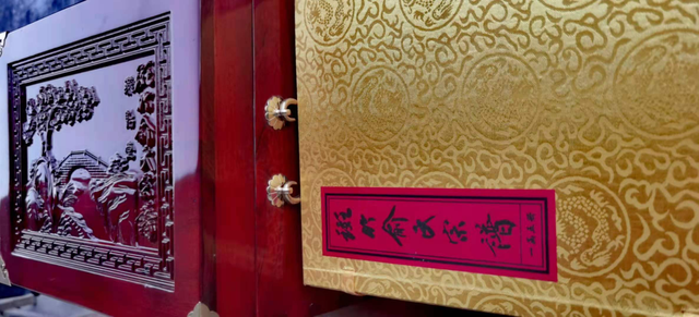 这次宗谱的百年重修,专门成立了以俞小国为主任,以俞国平、俞国永和俞诚方为副主任的重修《斑竹俞氏宗谱》委员会,向境内外所有的斑竹俞氏后裔征集信息资料。同时聘请五峰俞氏剡派后裔、宁波社科院原副院长俞建文和明派斑竹俞氏后裔、现在慈溪融媒体中心工作的著名诗人俞强作为顾问。本次重修《斑竹俞氏宗谱》历时一年有余,经六校而初始告竣,不可谓不慎重。这套宗谱封面黄色绸面,小圆龙底纹,黑字,金线装订。可谓装帧精美,集雍容华贵与儒雅于一体,还配上了量身定制的精致的樟木箱。箱面上雕刻着具有斑竹村地标意义的金井桥与竹子图案,令人双眸一亮。