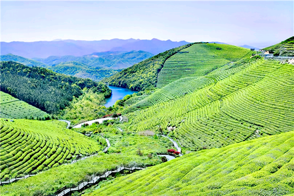 飘飘仙气沁重岗,万亩茶山翠且芳。