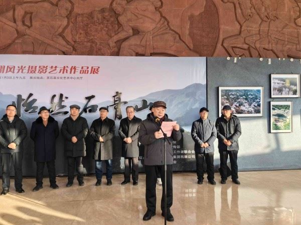接着,侯升翔发表致辞。他回顾了自己多年来对石青山风光摄影的探索和创作历程,分享了自己在摄影艺术上的心得和感悟。他表示,这次展览不仅是对自己多年来摄影成果的展示,更是对石膏山自然风光和人文景观的一次深情致敬。