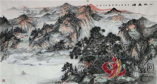 在山水画创作上,左艳阳追求“外师造化,中得心源”的境界。她遍访名山大川,将自然之美与心中之情融为一体创作出意境深远、气韵生动的山水佳作。其笔墨苍润相济,构图疏密有致,画面虚实相生,营造出空灵幽远、气象万千的艺术境界。