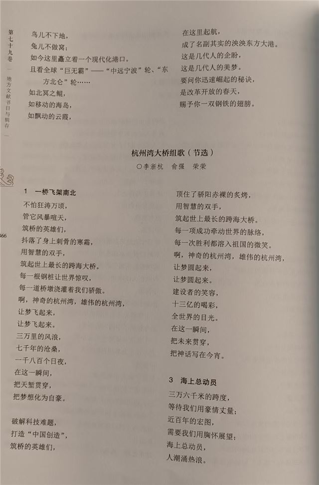 在该志第三章“艺文选辑”收录的16篇文艺作品中,慈溪诗人俞强的散文《上林湖之绿》与诗歌《杭州湾大桥组歌》成功入选,成为展现宁波文学成就与地方文化特色的重要代表。