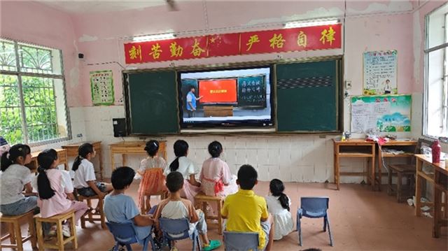 线下宣讲让红色精神在校园扎根时,团队没停在原地,想着还有更多孩子想听红色故事,便以“云端课堂”联动起桂平和灌阳县潮立村小学。屏幕亮起,村小的孩子们凑过来,队员举着老照片讲长征抉择、会议争论,有个孩子指着照片里的旧物件小声说“爷爷家也有类似的”;这种“云端课堂”的联动模式,既打破了地域阻隔,又让“挽救了党和红军”的意义借着这些画面慢慢融进孩子们心里,悄然种下知史爱党的种子。