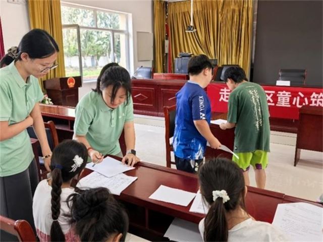实践团发挥专业优势,将法治教育融入实践。围绕“预防校园霸凌”主题,摒弃了枯燥的法条说教,以学生为中心。从最初的案件深度剖析开始,在实践团成员专业而耐心的引导下,孩子们逐步理清一桩校园霸凌事件的来龙去脉。随后,实践团成员带领孩子们学习相关法律条文,理解了故意伤害、人格尊严保护等抽象法律概念的背后所蕴含的保护力量。最核心的环节在于角色扮演与模拟审判:威严端坐的审判长、一丝不苟记录庭审的书记员、义愤填膺诉说不公的原告、接受诘问与内心挣扎的被告。整个模拟法庭流程严谨,氛围庄重。