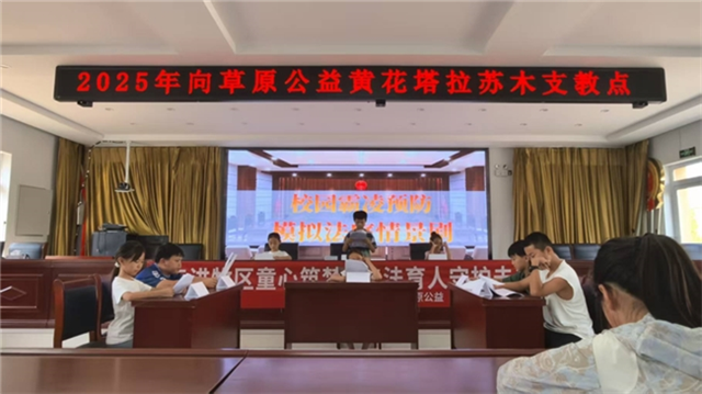 8月11日,内蒙古通辽市奈曼旗黄花塔拉苏木社区内,青春的活力与法律的庄严交织。“法润北疆”实践团走进这里,为当地青少年带来一场别开生面的红色文化传承课与模拟法庭情景剧活动,探索“专业赋能+文化交融”的志愿服务新模式。