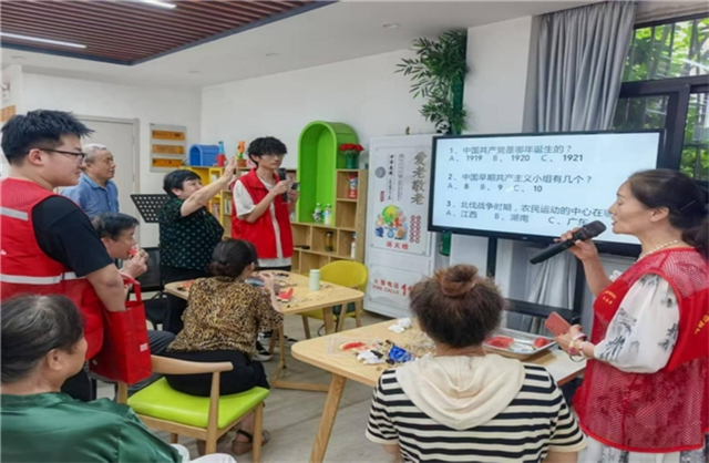 在“感恩党·话幸福”主题交流环节,70多岁的张爷爷动情讲述生活变迁:“从土坯房到电梯房,从看病难到医保全覆盖,都是党的好政策带来的。”随后的党史问答活动中,老人们踊跃参与,准确回答问题。实践队员们为答对者送上实用礼品,现场欢声笑语不断。