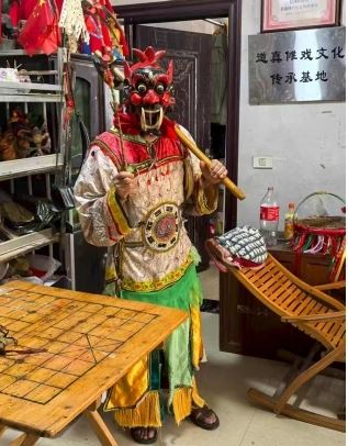 在一处古朴的傩堂内,团队有幸采访到道真自治县仡佬族国家级非遗傩戏传承人杨朝忠老师。他如数家珍般向队员们展示着承载民族记忆的纹样与傩面,指尖翻飞间,古老的智慧流淌。他坚定表示:“这些面具,是老祖宗留给我们的‘魂’,不能在我们手里断了线。”在与杨先生的交谈中,队员们深刻认识到傩戏传承在当代社会所面临的传承难、市场小、经费少的严峻挑战,同时也看到杨先生等传承人坚守的信念以及将傩戏融入文旅发展的积极探索。团队成员深受触动:“传承人的坚守令人敬佩。我们记录下的不仅是技艺,更是一种生生不息的文化精神,这为探索文旅融合提供了独特资源禀赋。”