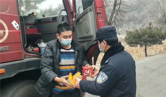 宜川籍货车驾驶员在倒班过程中,另外一驾驶员由于核酸结果未出来,其在车上等待一天,圪台派出所辅警杨宏伟为其提供了一日三餐。