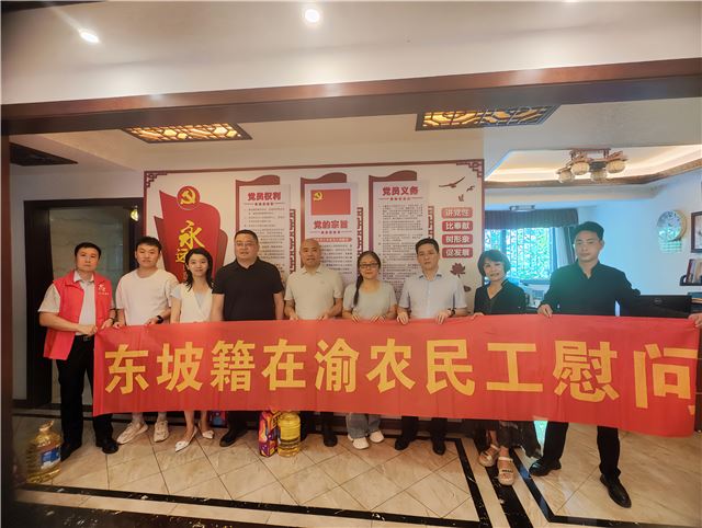 为进一步做好农民工服务保障工作,切实发挥好驻外工作站“娘家人”作用。5月22日,眉山市东坡区委常委、统战部部长董兴立,东坡区副区长朱科良及区人社局、工商联、农民工服务中心等部门相关负责人一行赴重庆市渝北区召开驻外农民工服务工作站慰问座谈会。
